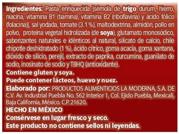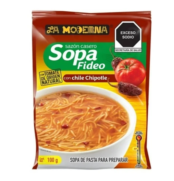 Disfruta de comidas completas con La Moderna que trae para ti esta deliciosa sopa de fideo con tomate sabor chipotle. Su combinación de especias será ideal para combinar con tus platillos típicos. El sabor casero de La Moderna hace tus días más fáciles. En nuestra tienda en línea tenemos lo que necesitas gracias a nuestros diversos departamentos, solo agrega a tu carrito de compras por internet tus productos favoritos con tan solo unos cuantos clics y aprovecha el servicio de entregas a domicilio.